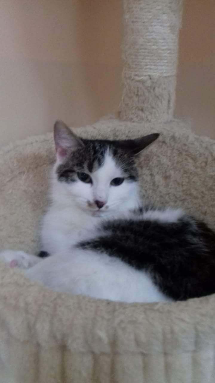 To jest kochana Poli. Ma już 5 miesięcy. Adoptowana jako maluch do Warszawy ” wyladowala” w Ząbkach. Podobno wsiadła do samochodu i pojechała. Tak twierdzi poprzednia , nieodpowiedzialna, opiekunka od ,której zabraliśmy Poli i Gacusia. Ta kochana kociczka wróciła do nas w opłakanym stanie. Około 1 miesiąca dochodziła do siebie. Podjadła, pozbył a się pasożytów, uspokoiła się. Jest gotowa do adopcji. Może być w każdym domu, byle nikt jej nie ” wystawiał na taras” jak poprzednia opiekunka, która już jest na Czarnej liście.